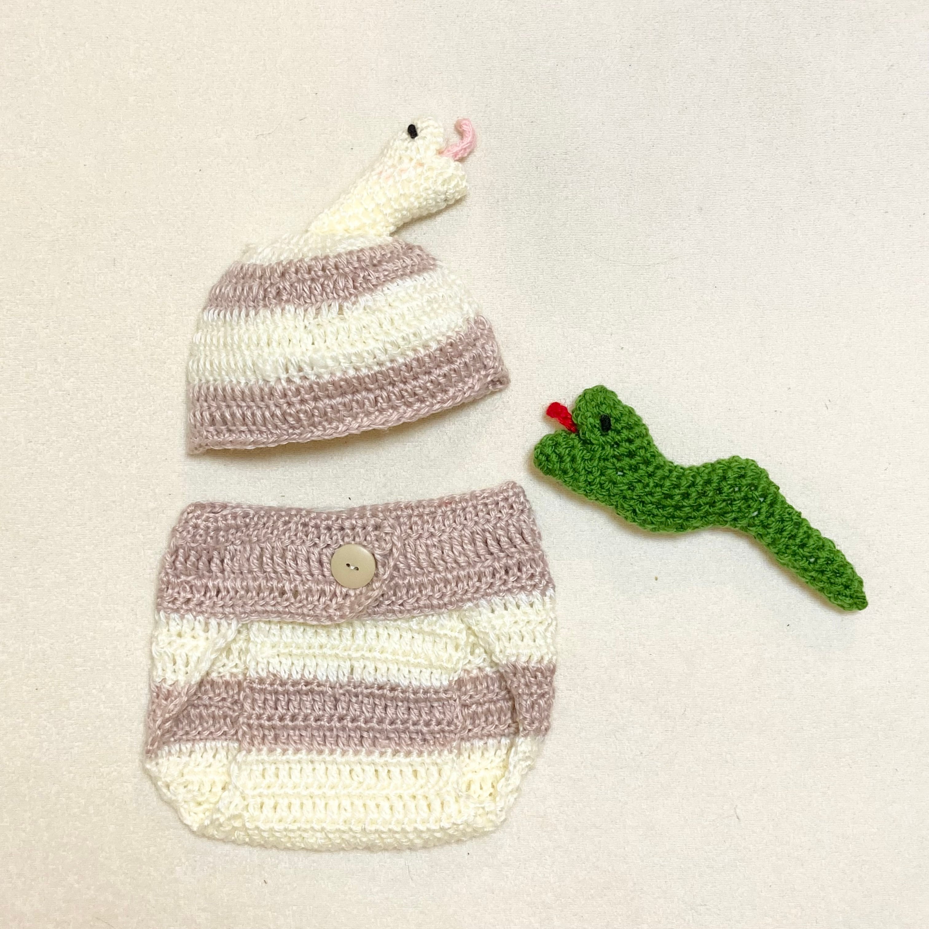 ベビーコスチューム へび ベージュ * ニューボーンフォト ハーフバースデー 月齢フォト バースデーフォト 撮影衣装 へび 蛇 巳