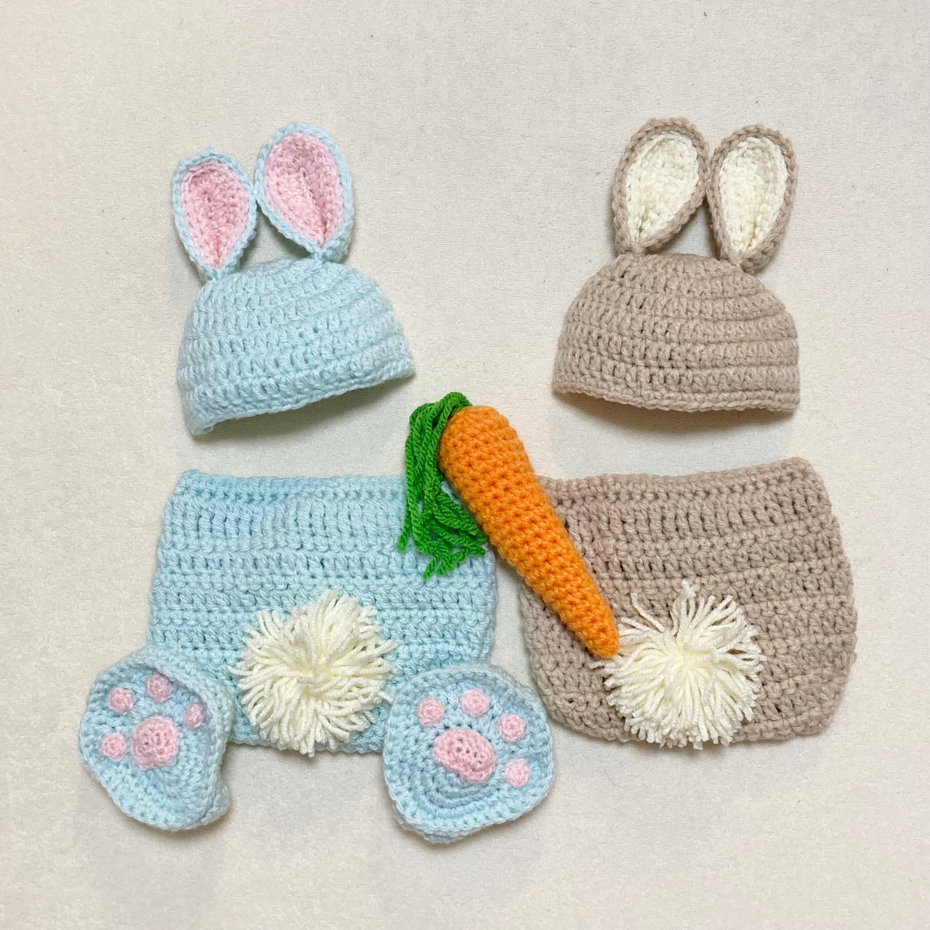色違いやデザイン違いの垂れ耳うさぎのコスチュームや、同じ糸でおつくりしたウサギさんのあみぐるみもご用意しております。